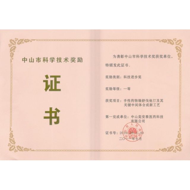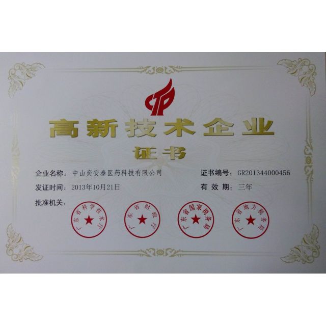 奕安泰已通过了ISO9001质量体系认证,目前已导入并实施药品生产质量管理规范(GMP)。在奕安泰的发展历程中,曾先后荣获“火炬开发区科技创新奖”、“火炬开发区科技创新先进单位”、“中山市科学技术奖励一等奖”、“中山市引进创新科研团队奖”等奖项。2013年,公司荣获“广东省高新技术企业”称号。2015年,经中山市政府批准成立中山市不对称催化(奕安泰)工程技术研究中心。