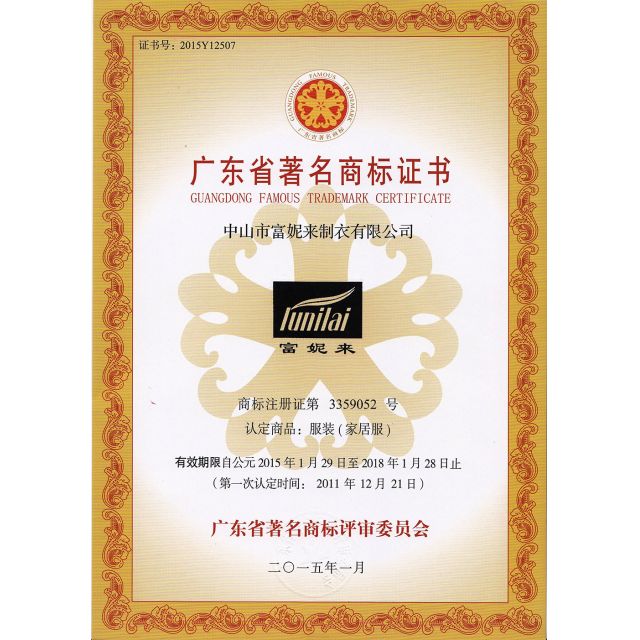 本企业现已拥有"富妮来"、"法莉雅"等国内外知名品牌,产品主要有家居服、文胸、内裤三大系列一千余品种。引进日本、德国、法国生产线、多头式刺绣机、多色印花设备、服装电脑CAD系统等现代化生产设备,并运用先进的国际化企业经营管理模式,以质优、款新的个性设计,力求每个款式都以舒适健康与经典时尚的完美结合,在内衣行业独树一帜。